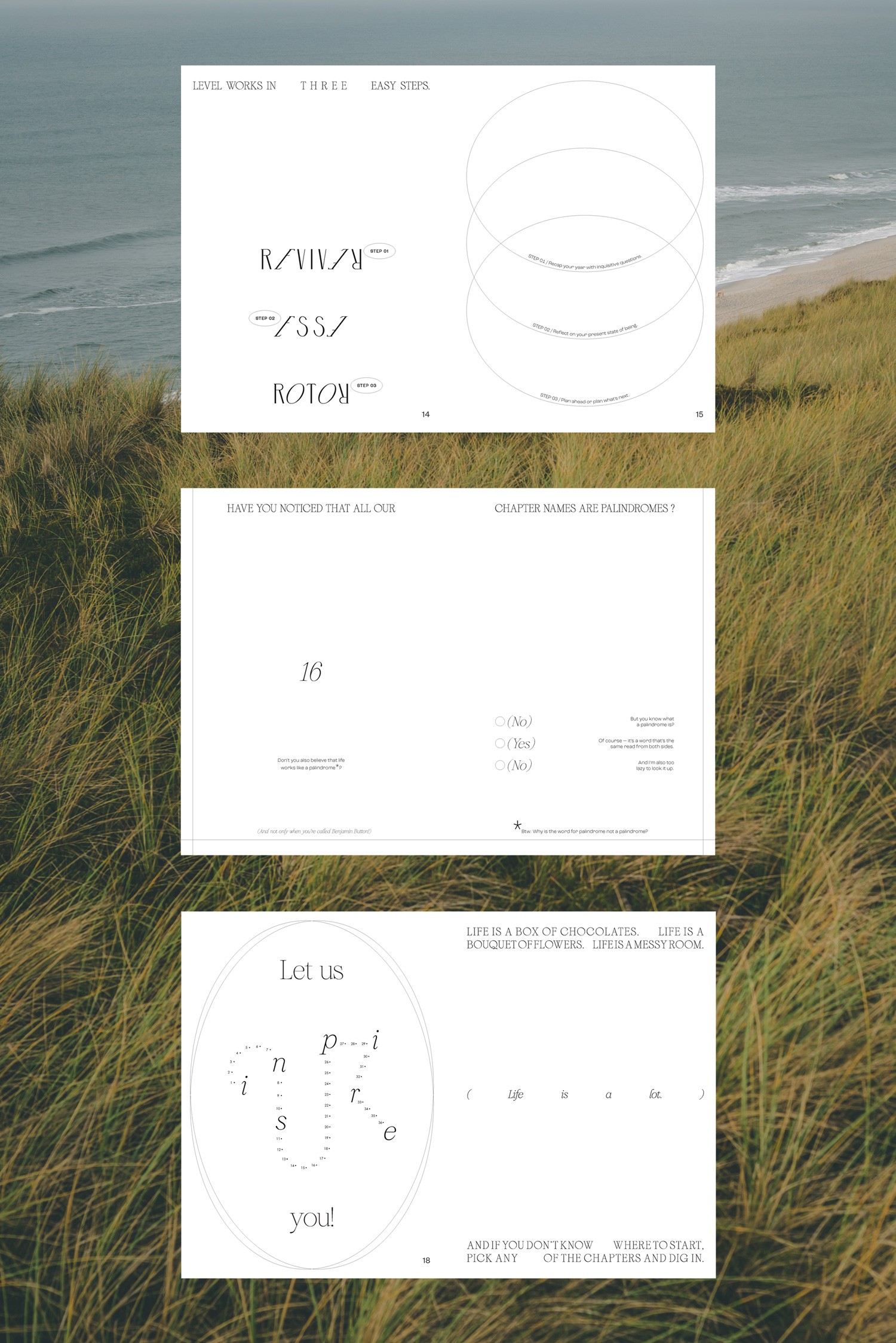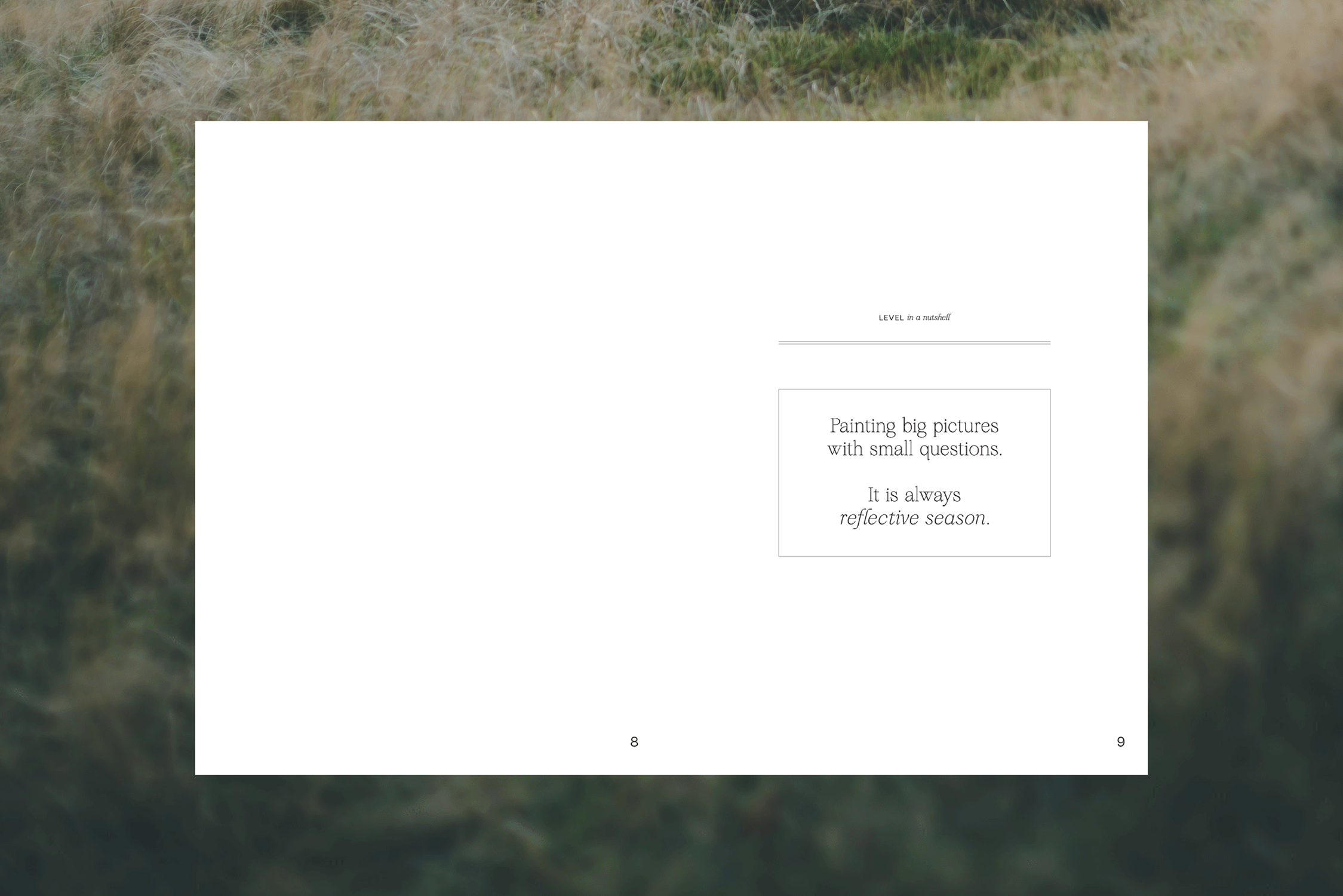 Our reflective LEVEL Journal as digital bundle! Let LEVEL be your guidebook, piloting you through your past year, looking at your present self and imagining your future. LEVEL has everything – the looks, great content and the power to create grand feelings. It works in three easy steps & you can easily print it out at home or at the copy shop around the corner. LEVEL is nothing more than a Q&A. However, all we’ve prepared are the questions, the answers lie within you.